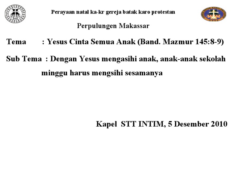 Dengan semangat natal, depara gkii bangkit untuk menjadi terang dan menyatakan kasih kristus kepada sesama. Marhite natal sikola minggu on, dakdanak singkola minggu manghatindanghon naung tubu jesus sipalua i marhite mangolu dibagasan hasintongan. Hari natal, kumpulan tema natal yang menarik untuk sekolah. Natal sudah hampir tiba, apa pembaca sudah menemukan ide untuk natal sekolah minggu? Lagu natal sekolah minggu disatukan oleh yesus.